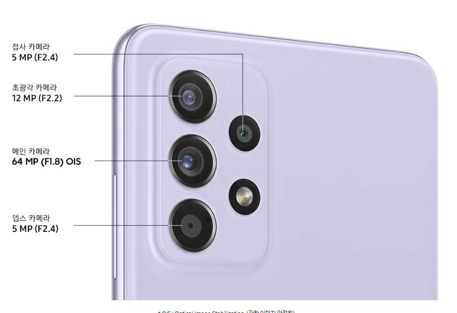 카메라 | 전면 3,200만화소 F/2.2 후면 기본 6,400만화소 AF F/1.8 초광각 1,200만화소 F/2.2 심도 500만화소 F/2.4 접사 500만화소 F/2.4 |