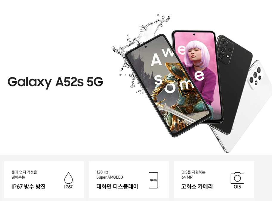 갤럭시 A52S은 2021년 8월에 공개되었던 모델로 갤럭시 A52가 가성비가 매우좋아 인기가 많았던 많큼 시간이 지난 지금도 수요가 있는 상태입니다.