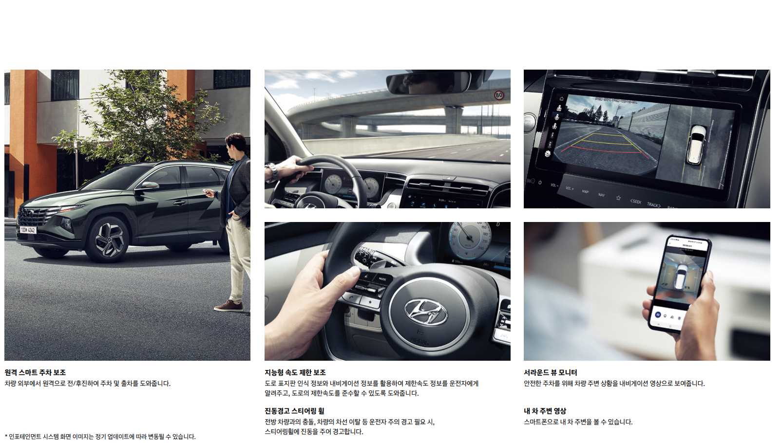 투싼 전체 트림에 신규 사양인 지능형 속도 제한 보조 및 진동 경고 스티어링 휠을 기본으로 탑재해 편의성을 높였습니다.