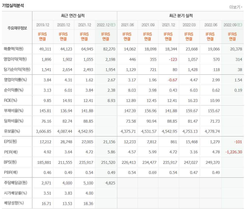 - 천연가스 가격 상승에 따라 제품 및 원재료 가격이 크게 상승했고, 이에 따라 외형 확장에 성공함.