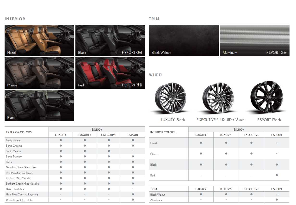 5. 렉서스 하이브리드 트림별 구성 옵션