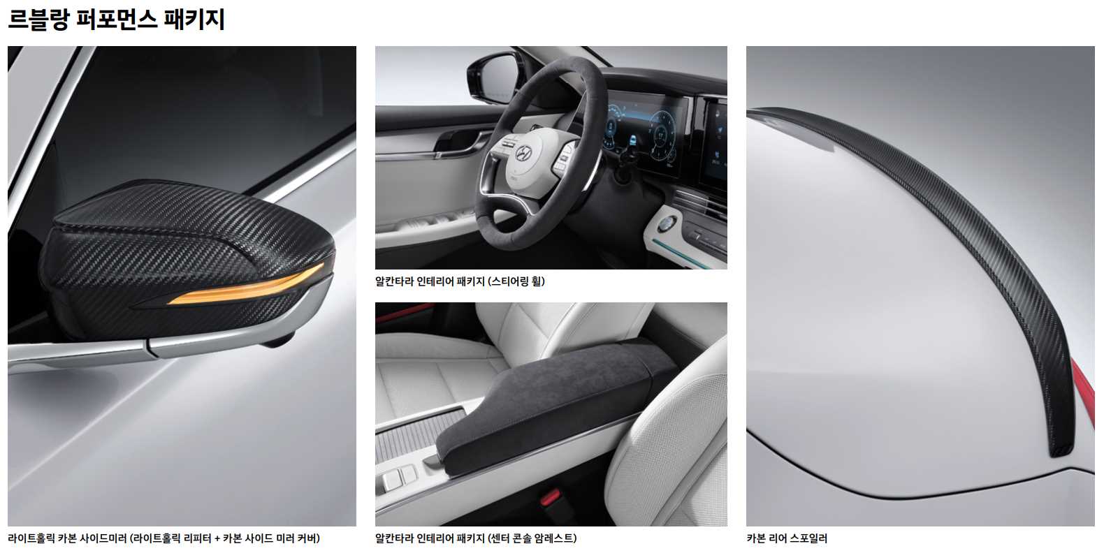 디자인 플러스 19인치 알로이 휠 & 미쉐린 타이어, 나파가죽 시트, 스웨이드 내장재(헤드라이닝, 필라트림), 나파가죽 감싸기 스티어링 휠 혼 커버(리얼 스티치 포함)