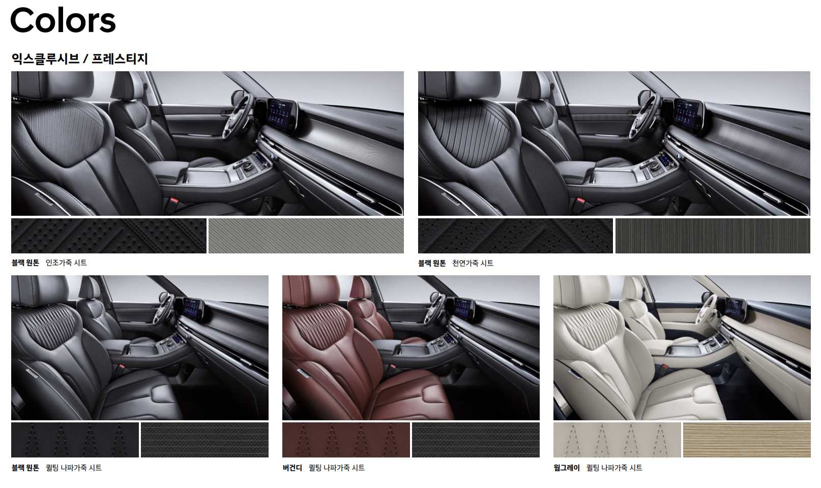 2022 팰리세이드 외장은 7가지 색상으로 구성되어 있습니다.