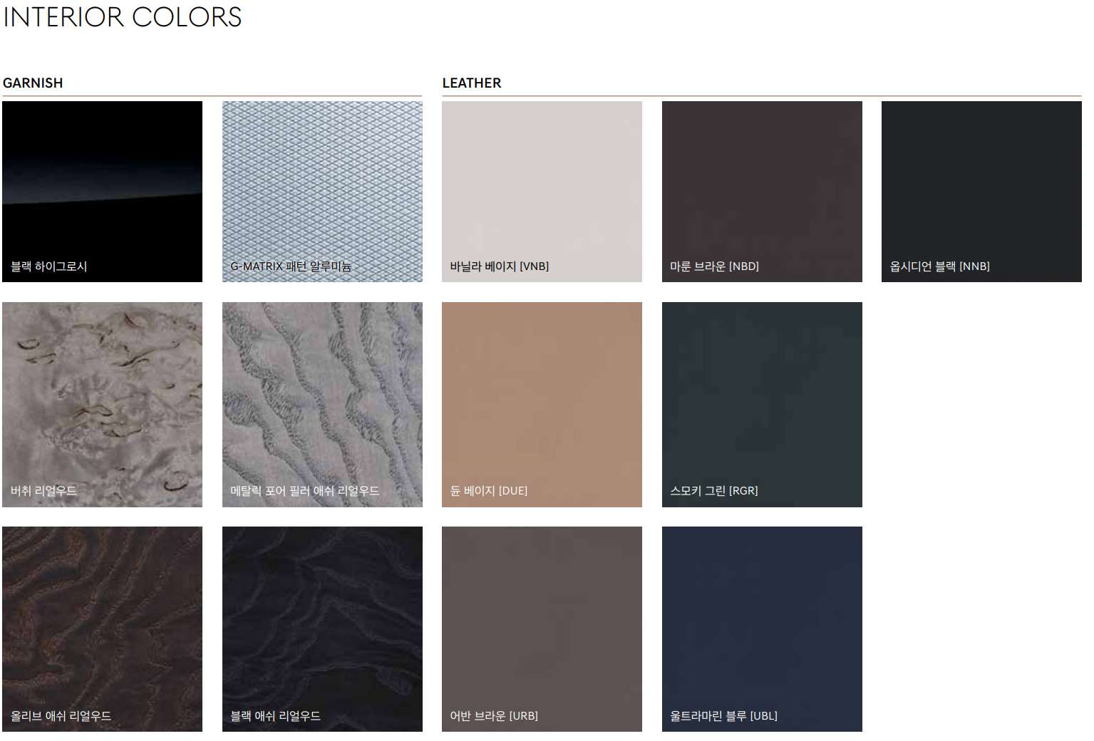 제네시스 GV80은 총 12개의 외장컬러와 다양한 내장컬러 및 디자인을 제공하고 있습니다.