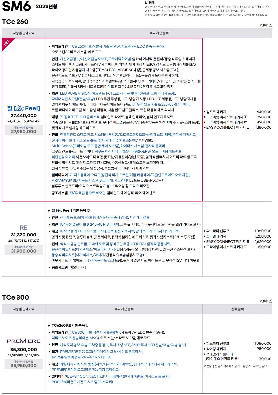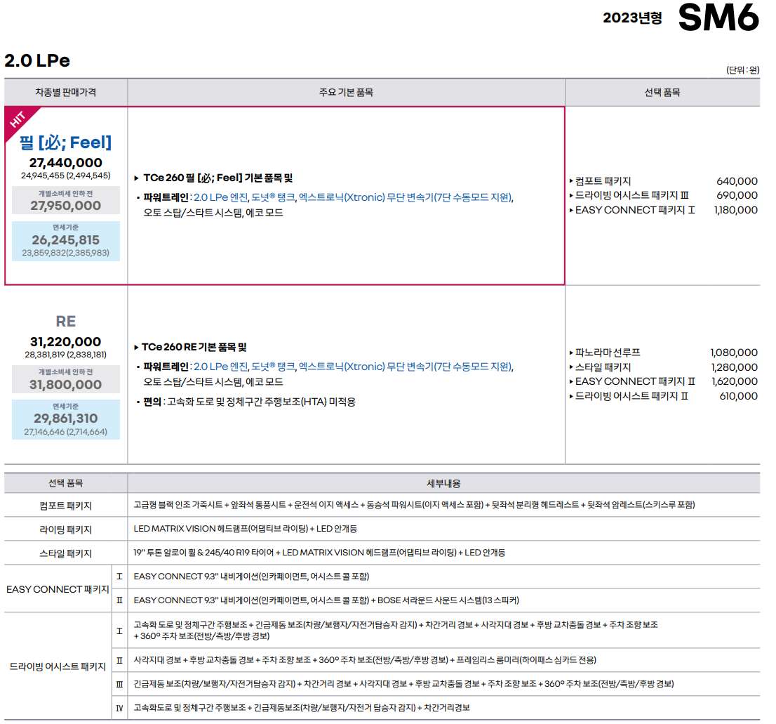 3. 2023 SM6 트림별 가격