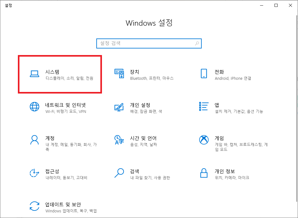 윈도우 키를 누르면 나오는 톱니바퀴모양의 설정을 선택합니다.