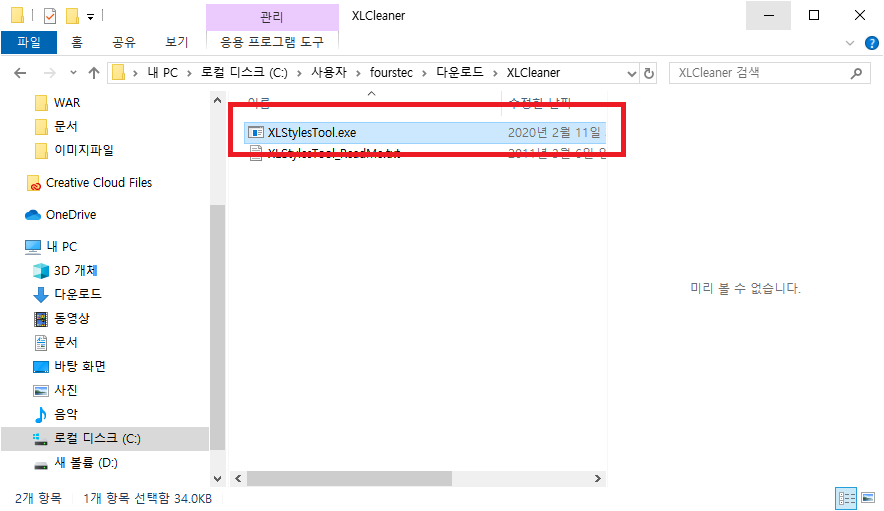 그런 뒤 XLStylesTool.exe 파일을 실행하여 줍니다.