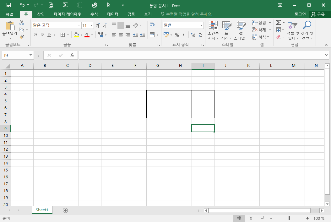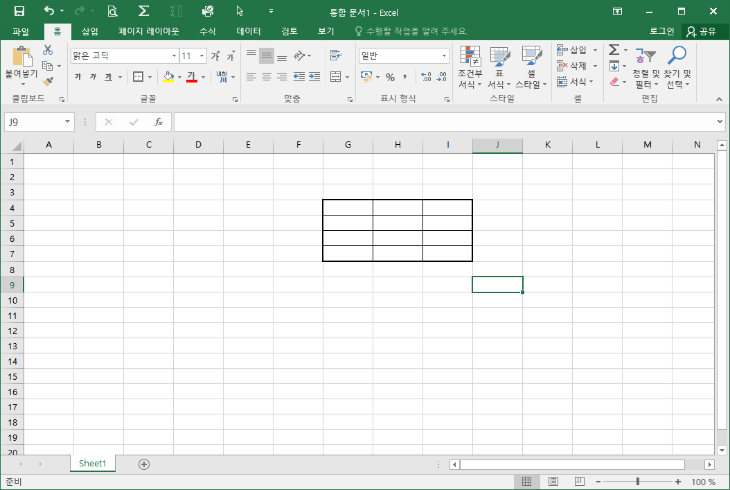 모든 테두리를 선택하면, 지정된 셀에 모두 테두리가 그려집니다.