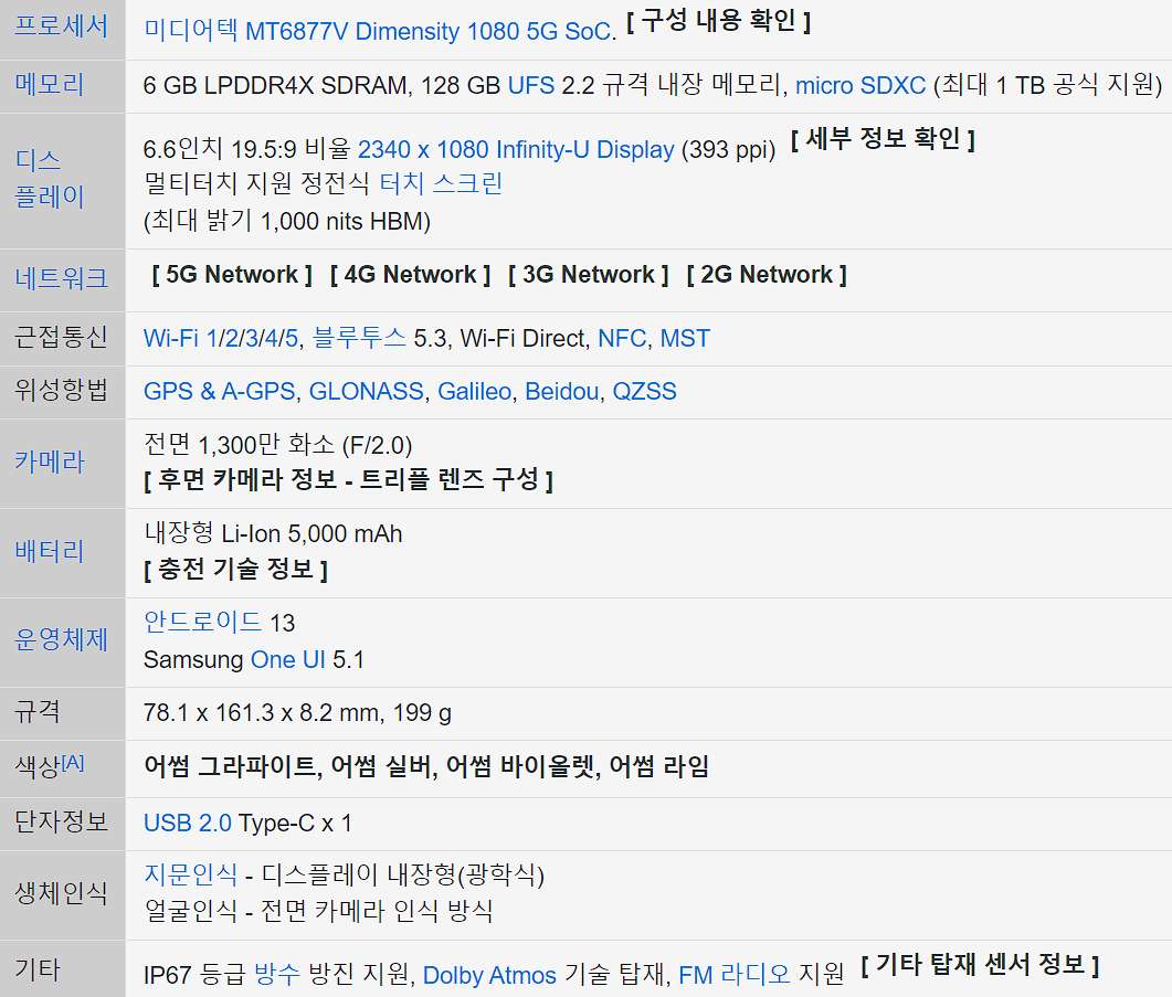 갤럭시 A34 스마트폰 상세 스펙