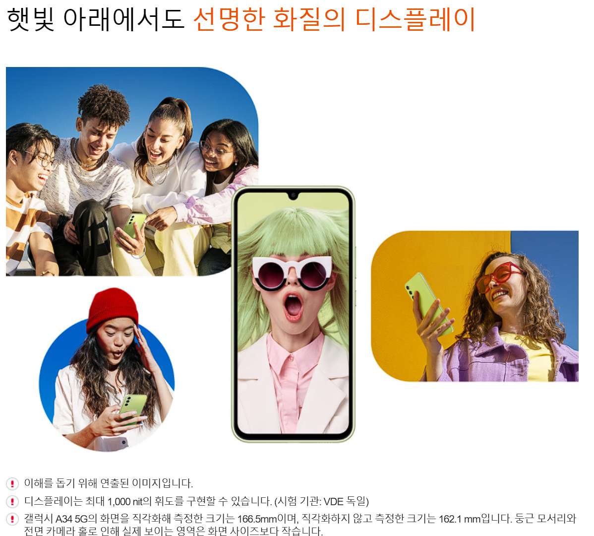 갤럭시A34의 가장 큰 장점은 햇빛 아래서도 선명한 화질을 자랑하는 디스플레이를 탑재하여 야외 사용이 많은 분들에게도 좋은 디스플레이를 가지고 있어서, 영상이나 이미지를 감상하시기에도 적합합니다.