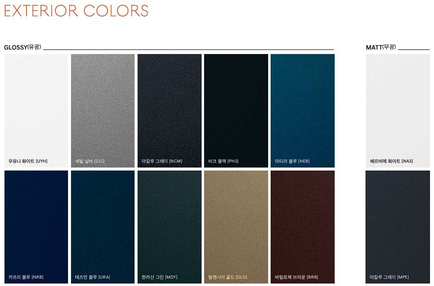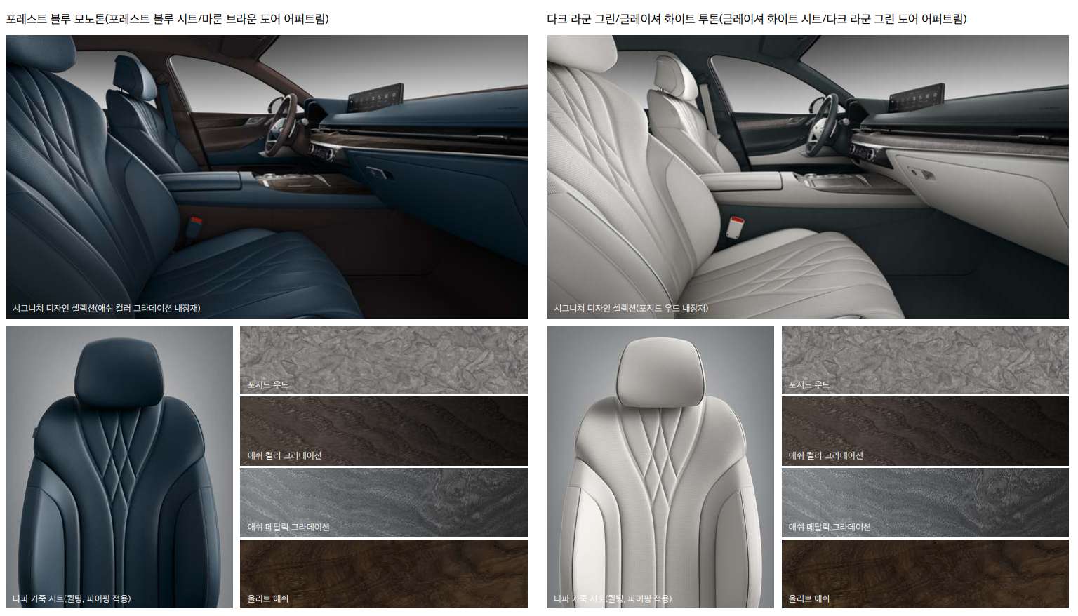 제네시스 일렉트리파이드 G80은 총 12개의 외장컬러와 다양한 내장컬러 및 디자인을 제공하고 있습니다.