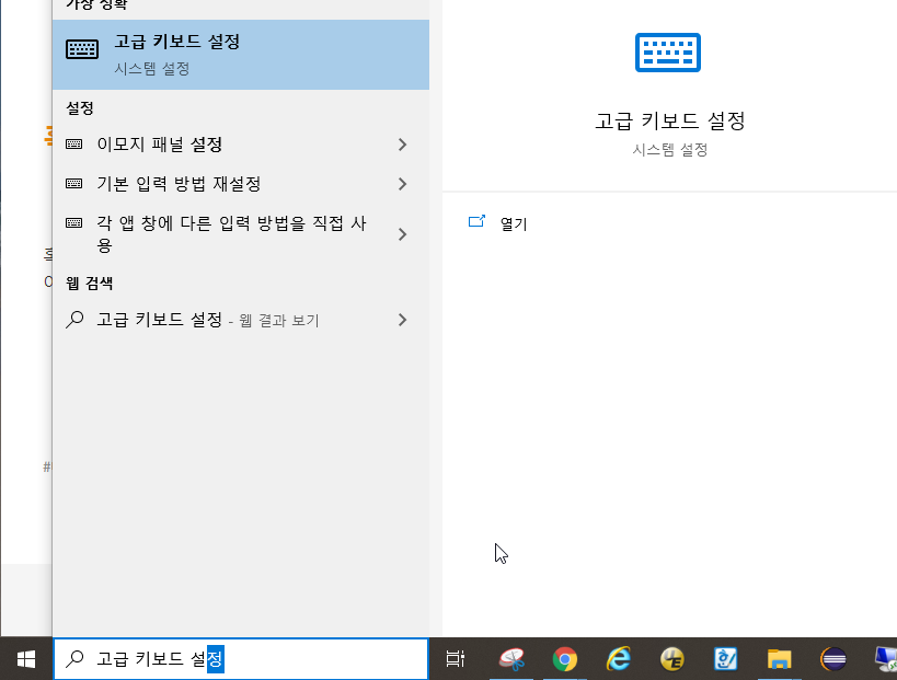 먼저 검색에 고급 키보드 설정이라고 검색 후 선택하여 줍니다.