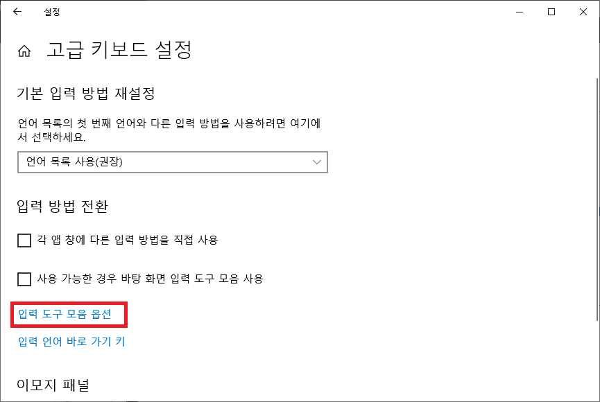 그런 뒤 입력 도구 모음 옵션을 선택하여 줍니다.