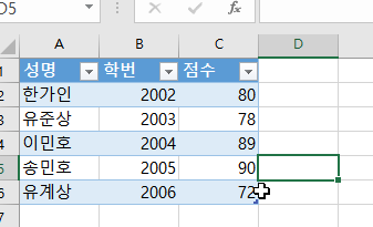 표 옆쪽 열에 새로운 데이터를 입력하면 해당 열도 왼쪽에 있는 표에 속한 것처럼 서식이 들어가지게 됩니다.