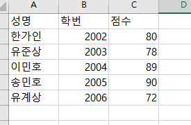 먼저 표로 만들려고 하는 데이터를 입력하여 줍니다.