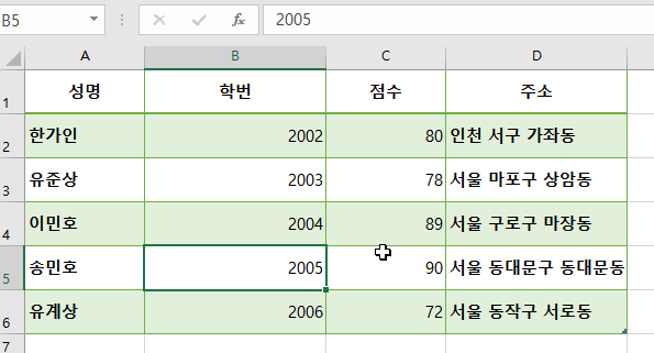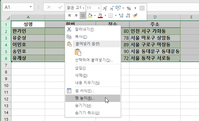 그러면 이와 같이 행높이도 변경되는걸 확인하실 수 있습니다.