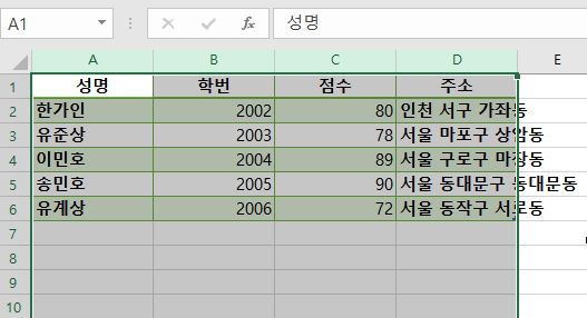 그러면 다음과 같이 셀크기가 동일하게 설정된 것을 확인하실 수 있습니다.