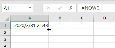 now 함수는 현재 컴퓨터 시스템의 날짜와 시간을 반환해 줍니다. =now() 를 입력하여 주면, 오늘이 2020년 3월 31일 9시 40분이라면 그 시간을 반환하여 줍니다.