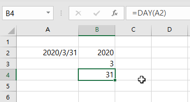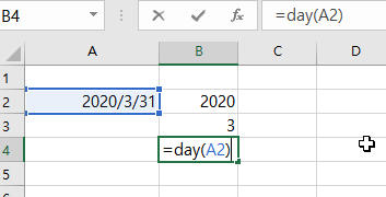 날짜가 있는 셀에서 일자만을 추출해서 보여줍니다. =day( 를 입력 후 날짜가 있는 셀을 지정해주시면 됩니다. 그리고 괄호를 닫아서 수식을 마무리해주면 됩니다.