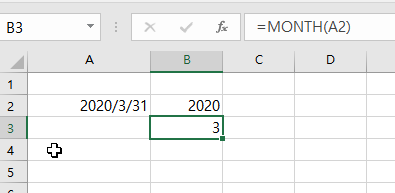 날짜가 있는 셀에서 월만을 추출해서 보여줍니다. =month( 를 입력 후 날짜가 있는 셀을 지정해주시면 됩니다. 그리고 괄호를 닫아서 수식을 마무리해주면 됩니다.