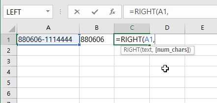 RIGHT(Text, Num_chars)