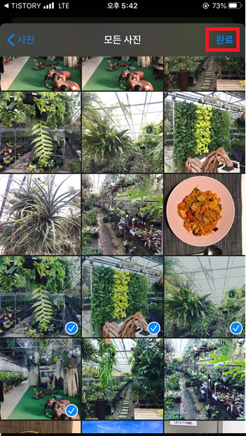 그리고서 합치려는 사진들을 선택하여 주고 우측 상단에 완료버튼을 눌러주세요.