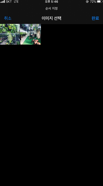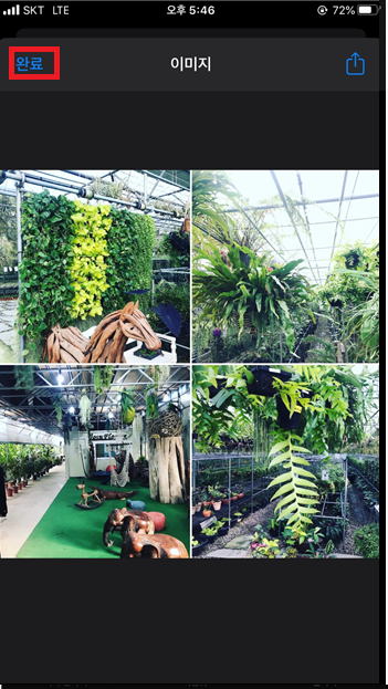 그러면 아까 선택한 순서대로 합쳐진 사진을 확인하실 수 있습니다. 좌측 상단에 완료 버튼을 눌러주면 완료가 됩니다.