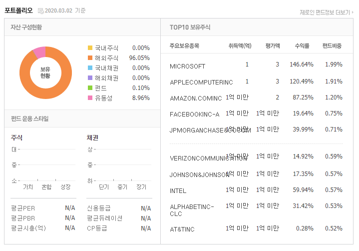 일단 0.69%의 해외주식펀드 치고는 저렴한 총보수를 가지고 있어서 추천하는 바이다. 또한 투자된 기업들이 IT와 금융 대형주들이 많아서 앞으로 4차산업혁명과 금융은 나쁘지 않은 미래가치를 가지고 있다고 생각하고 있기에 좋은 펀드중 하나라고 생각한다.