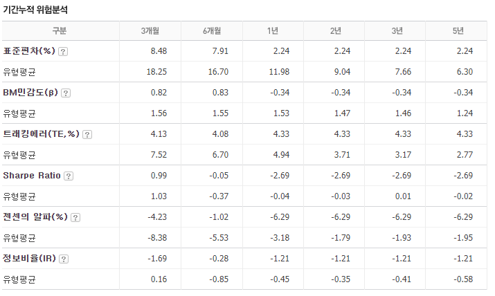 이런 혼합형 상품은, 처음 퇴직연금 운용을 시작하신 분이나, 상품에 대해 좀 어려움을 느끼시는 분들에게 처음 시작하기에 좋은 펀드들이여서 그런분들이라면 적극 추천 드립니다.