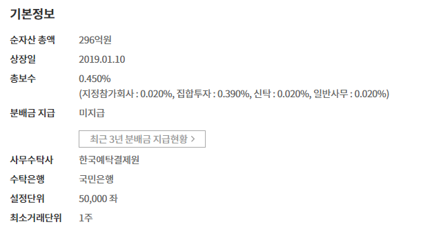 총보수는 0.45%로 보통 0.3% 대의 다른 것들에 비해 약간 높은 편이긴 하지만, 국내ETF로 해외ETF의 주요 자산을 투자할 수 있다는 메리트를 볼때, 그렇게 큰 금액으로만 다가오지는 않는다.