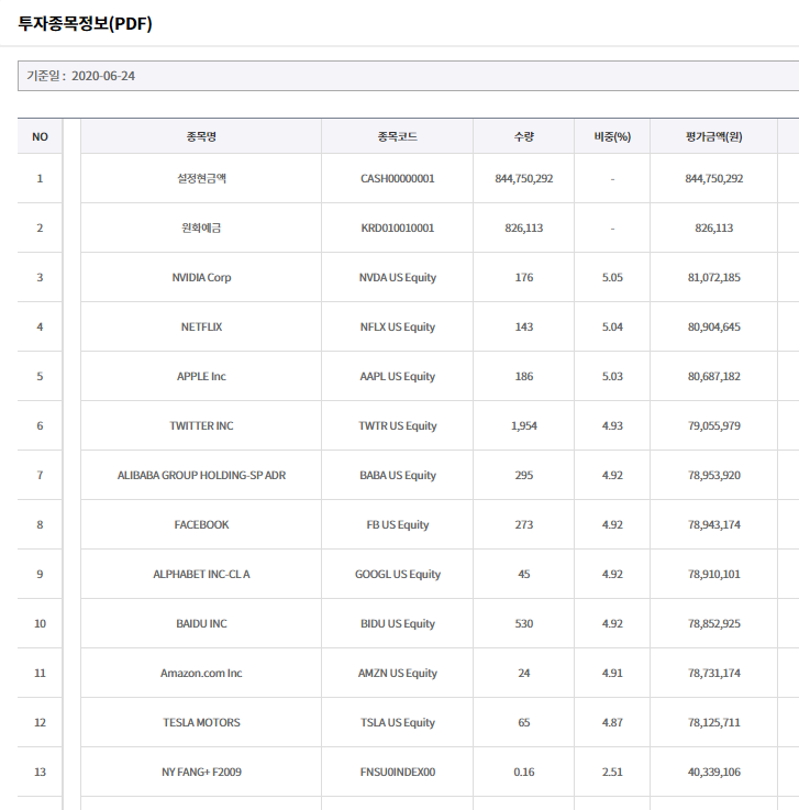 이 기업들에 투자하는 상품이다보니, 향후 10~20년을 믿고 갈 수 있는 기업들이라고 생각이 됩니다. 이 ETF하나만으로도 4차산업혁명을 주도하는 기업들에 투자가 가능하니 좋은 포트폴리오가 될 수 있을 것 같습니다.
