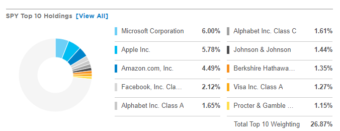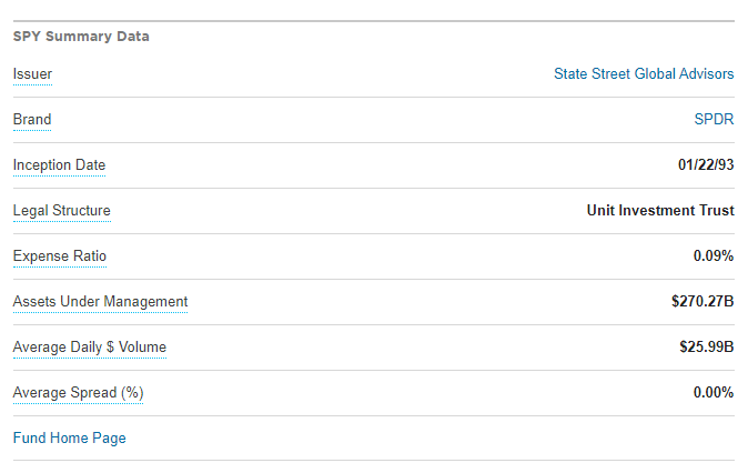 SPDR S & P 500 ETF Trust인 SPY ETF는 가장 오래된 미국 상장 ETF이며 시가총액과 거래량이 제일 많습니다. 이 ETF는 미국에서 가장 인기있는 지수인 S&P500에 추척합니다.