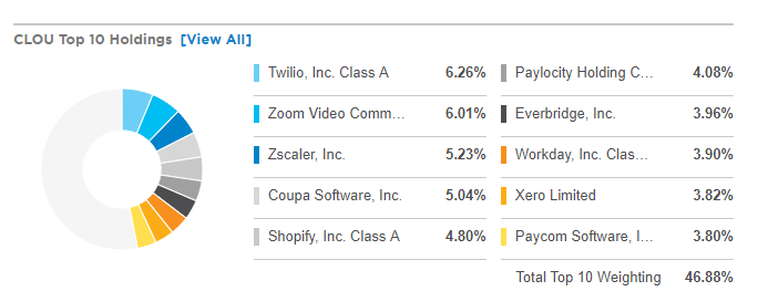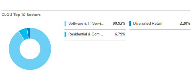 이 클라우드 기반에 회사에 투자하는 CLOU ETF는 증가하는 클라우드 수요로 혜택을 보게 되는 기업등에 투자하는 펀드로 써, 클라우드 유형인 Saas, Paas, Iaas와 관련된 비지니스를 하는 기업 및 데이터센터를 위한 부동산 또는 클라우드 인프라에 투자하는 기업등에 투자하는 펀드입니다.