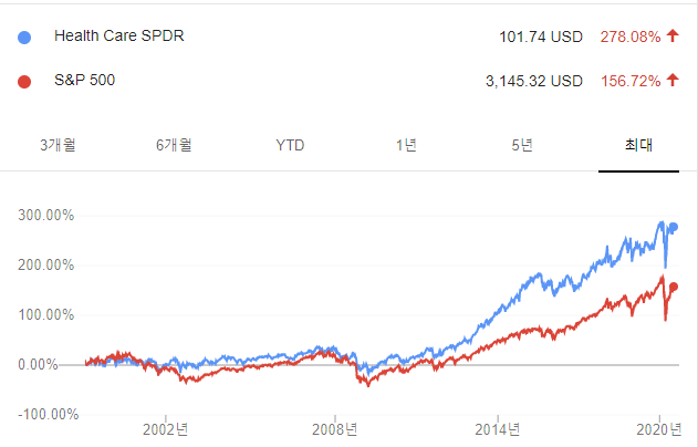 그런 관점에서 XLV ETF 상품은 아주 좋은 상품이 될 듯 싶습니다.