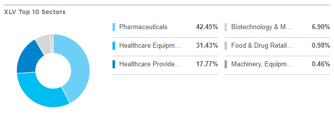 생소할 수 있는 기업들이 많지만, 미국내에서는 굉장한 규모들을 자랑하는 기업들이 모여 있으며, 신제품을 연구 개발하는 기업 부터, 생산 및 유통하는 기업, 그리고 의료기기 공급 기업까지 여러 헬스케어의 섹터를 모두 담고 있어서 이 XLV ETF 하나로도 미국의 헬스케어 시장을 투자할 수 있는 장점을 가지고 있습니다.