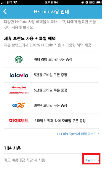 그리고는 H-Coin 사용 혜택 비교를 눌러줍니다.
