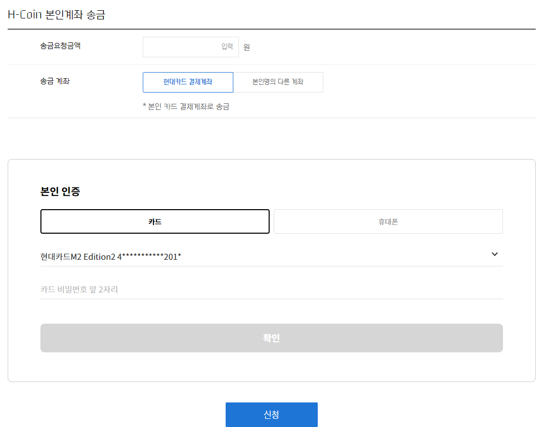 H-COIN 본인계좌 송금