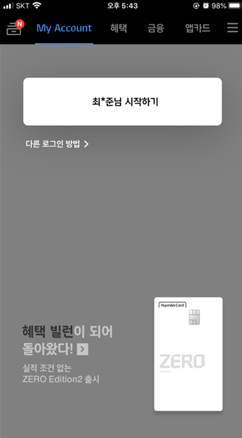 먼저 현대카드 앱을 실행하여 주세요.