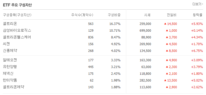 - TIGER 헬스케어는 국내의 바이오, 헬스기업들에 투자하는 ETF 상품으로 셀트리온, 삼성바이오로직스, 씨젠, 신풍제약등을 비롯한 대형 바이오기업 및 중소 기업들도 모두 포함하고 있는 ETF 상품입니다.