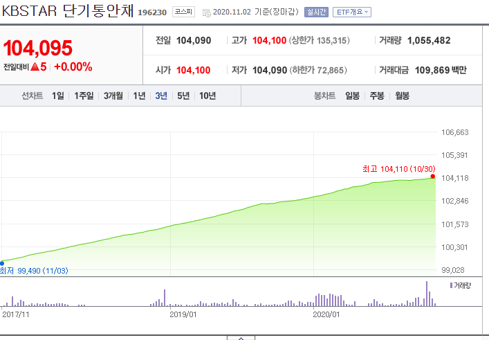 - 1년 수익률은 1.2%정도 수준이며, KIS 통안채 5개월 지수를 기초지수로 하고 있다.