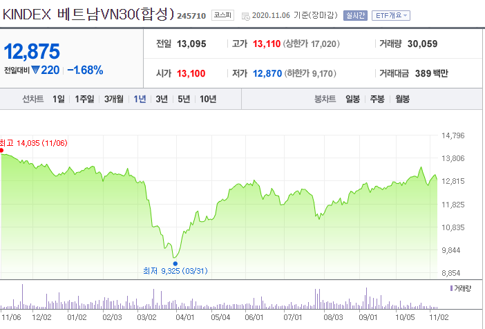 - 베트남 호치민거래소에서 발표하는 VN30 지수는 호치민 거래소 상장종목 중 시가총액, 유동성, 거래대금 등 시장대표성 요건을 충족하는 대형주 30종목으로 이루어져 있어서, 베트남을 이끌어가는 기업들에 투자가 가능합니다.