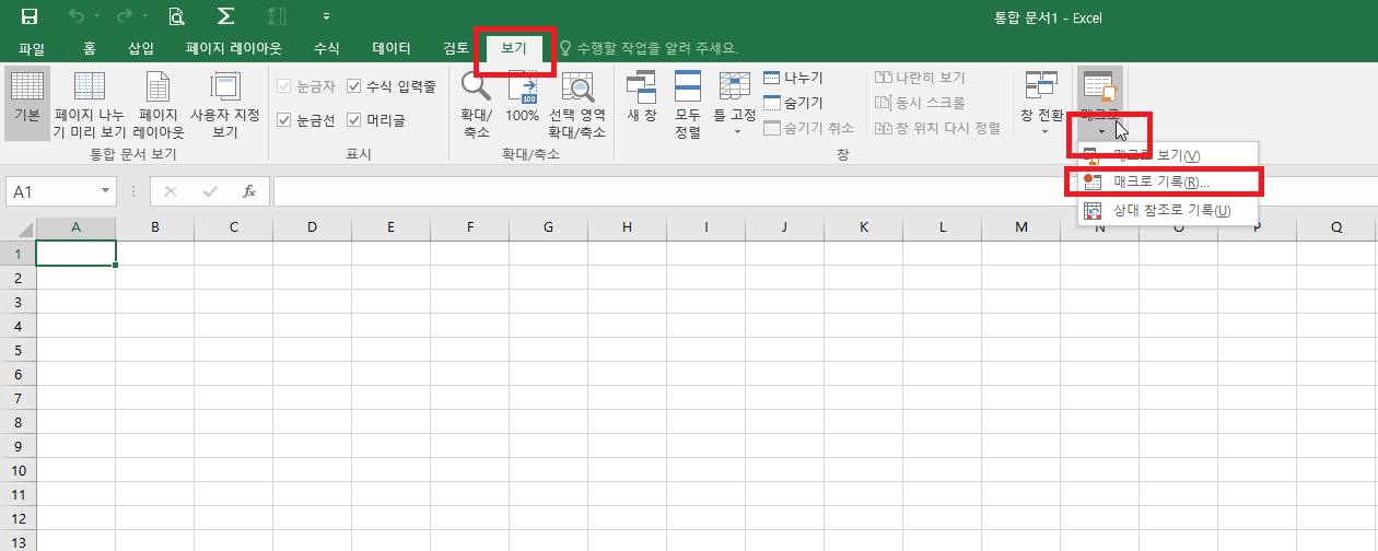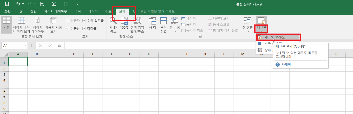 그리고서 [매크로 보기]를 눌러봅니다.