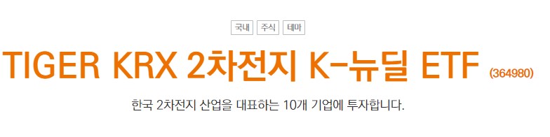 | TIGER KRX 2차전지 K-뉴딜 | KODEX 2차전지산업 | TIGER 2차전지테마 | |