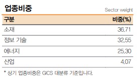 TIGER KRX 2차전지 K-뉴딜 ETF는 소재 36.71%, 정보기술 32.55%, 에너지 25.3%, 산업 4.07%로 관련업종이 고루 분포되어 있는 구조이며, 대체로 기업들이 여러가지 산업을 하고 있어서 연결성이 크다고 보여집니다.