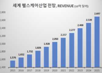 - 2020년 세계 헬스케어산업 규모(수익)는 약 2조 달러로 추정되며, 2025년까지 약 2.7조 달러에 육박할 것으로 전망된다.