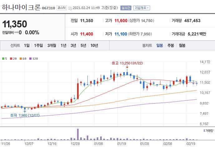 하나마이크론 (시스템 반도체 관련주 9종목)