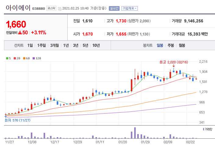 아이에이 (차량용 반도체 관련주 11종목)