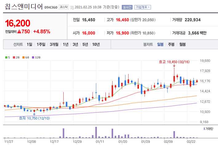 칩스앤미디어 (차량용 반도체 관련주 11종목)
