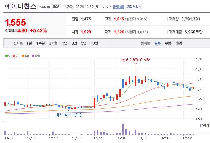 에이디칩스 (차량용 반도체 관련주 11종목)