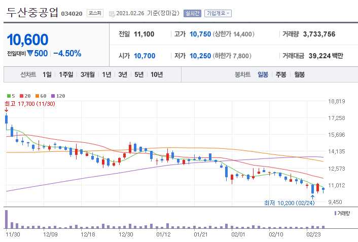 두산중공업 (풍력발전 관련주 12종목)